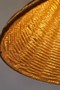 Rattan shade has gold leaf interior.