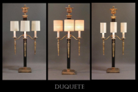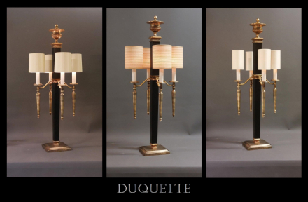 Inspired by a vignette we saw depicting a Duquette fabric + a gorgeous vintage table lamp, we designed this uber chic table lamp.