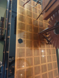 Top as one damaged spot. Luckily in a location where one can put an 'ink well'. ( see before last image)