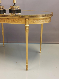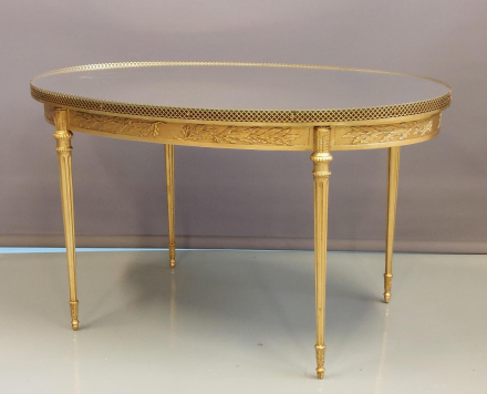 Elegant oval coffee table with mirror top.
