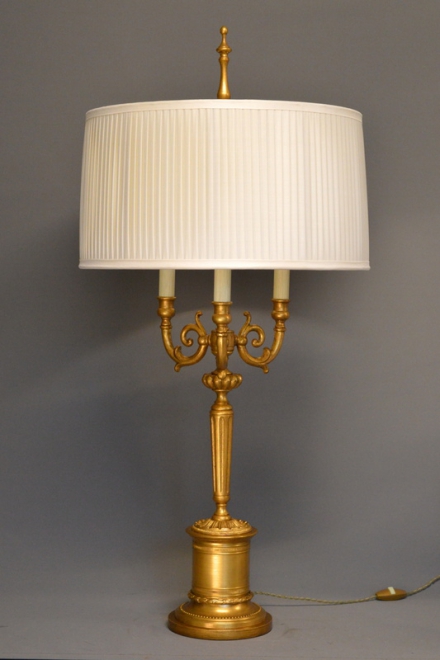 Shown in aged gold leaf. Chantung silk knife pleat shade.