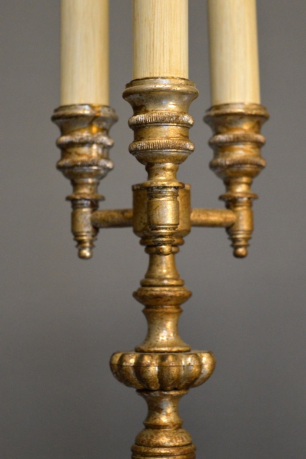 Lamp is fitted with three lamp holders in candle sleeves. Optional is a centrally placed cluster of lamp holders.