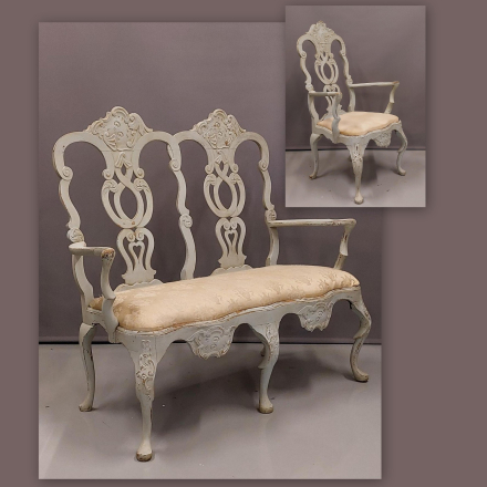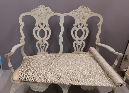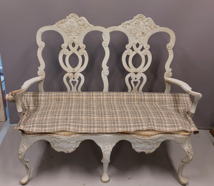 The bench still has the original intact coil/spring seat. It just needs a new fabric.