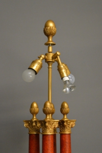 Vier Corintische zuilen en kapitelen op sokkel vormen een stoer geheel.