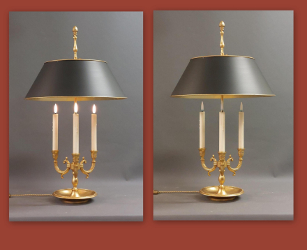 Bronze, brass. Optional tole shade.
